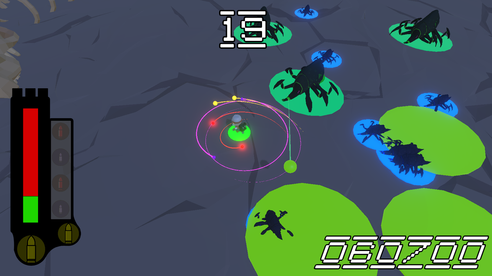 A top-down shooter inspired by Vampire Survivors. Shoot your way through in an endless cycle of battle with your bullets circling around you before looping back to your ammo bag. Choose new bullet types from upgrade chest — but beware, the more chest you open, the more aggressive the enemies become.
